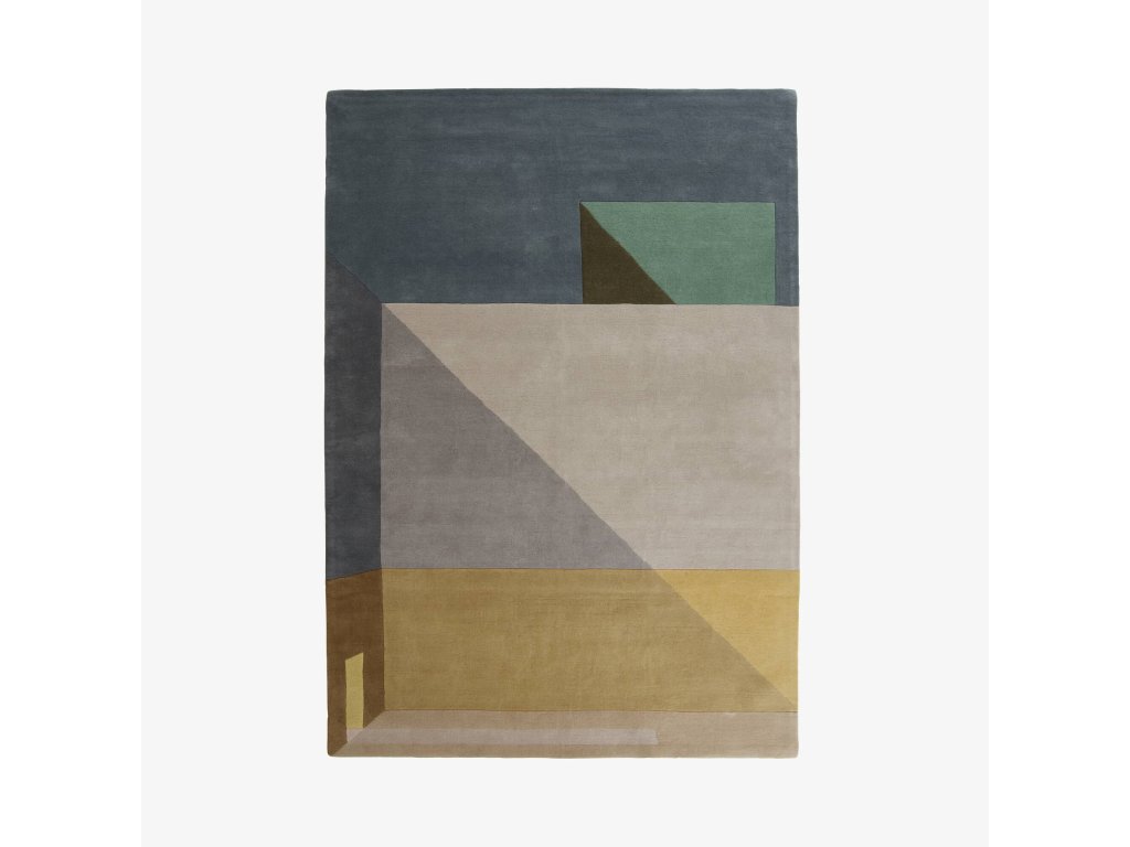 Vlněný všívaný koberec velkoryse zachycuje dojem perspektivy, na které je založen: hra světla a stínů nad otevřenou budovou s barevnými stěnami. Paprsky slunečního světla, které jsou vidět na pravé straně "výjevu", jsou také znázorněny u dveří v levé dolní části.