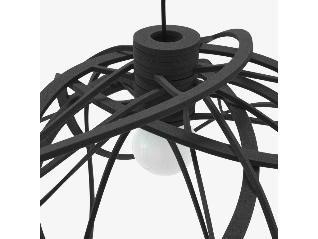 Závěsná lampa : Stínidlo z černé nebo bílé tvarované pěny o průměru +/- 55 cm v závislosti na daném tvaru. Uvedená výška odpovídá celkové výšce; Délka samotného kabelu je 130 cm. Dodáváno s 1 x E27 9 W LED žárovka Ø 95 mm - 2700 k (teplá bílá). Závěsná lampa (velká) : Stínidlo z černé nebo bílé tvarované polyetylénové pěny, o průměru +/- 80 cm v závislosti na daném tvaru. Uvedená výška odpovídá celkové výšce; Délka samotného kabelu je 200 cm. Dodáváno s 1 x E27 9 W LED žárovka Ø 95 mm - 2700 k (teplá bílá).