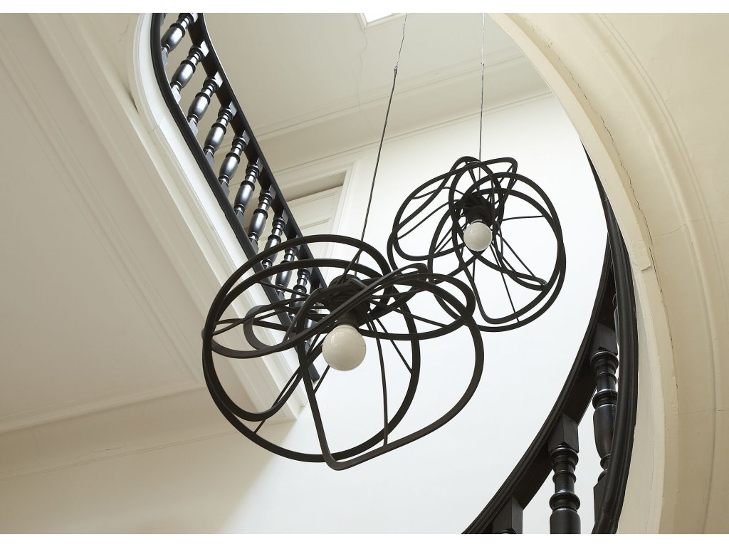 Závěsná lampa : Stínidlo z černé nebo bílé tvarované pěny o průměru +/- 55 cm v závislosti na daném tvaru. Uvedená výška odpovídá celkové výšce; Délka samotného kabelu je 130 cm. Dodáváno s 1 x E27 9 W LED žárovka Ø 95 mm - 2700 k (teplá bílá). Závěsná lampa (velká) : Stínidlo z černé nebo bílé tvarované polyetylénové pěny, o průměru +/- 80 cm v závislosti na daném tvaru. Uvedená výška odpovídá celkové výšce; Délka samotného kabelu je 200 cm. Dodáváno s 1 x E27 9 W LED žárovka Ø 95 mm - 2700 k (teplá bílá).