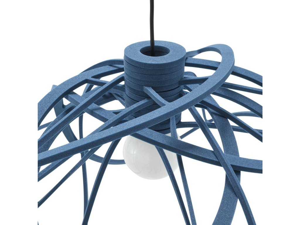 Závěsná lampa : Stínidlo z modré tvarované pěny o průměru +/- 55 cm v závislosti na daném tvaru. Uvedená výška odpovídá celkové výšce; Délka samotného kabelu je 130 cm. Dodáváno s 1 x E27 9 W LED žárovka Ø 95 mm - 2700 k (teplá bílá).