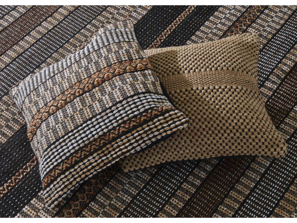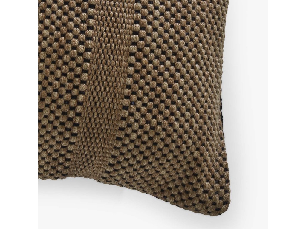 Polštář Caïpi, vyšívaný zlatým vzorem, je určen pro venkovní použití. Je vyroben z polyethylentereftalátu (neboli PET), což je velmi odolný a pružný syntetický materiál. PET se obvykle vyrábí z vláken smíchaných s pojivy, která nabízejí texturu a odolnost. Je také známo, že je to hypoalergenní materiál odolný vůči skvrnám. Tyto vlastnosti z něj dělají velmi oblíbený materiál pro polštáře, protože se snadno čistí a udržuje si svůj tvar a pohodlí po mnoho let.