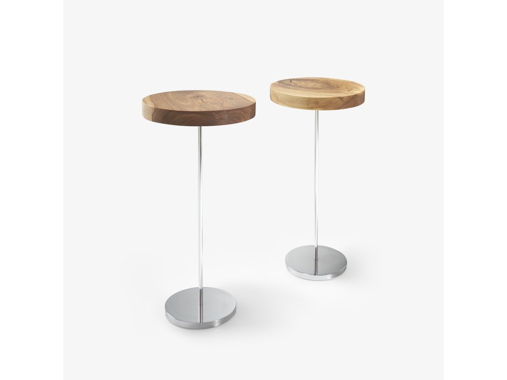 Konstrukce z černé oceli; top vyrobený z kulatiny z masivního ořechu s viditelnými suky a prasklinami. Průměr vršku se pohybuje mezi 25 cm a 30 cm. Každý stolek je jedinečný.