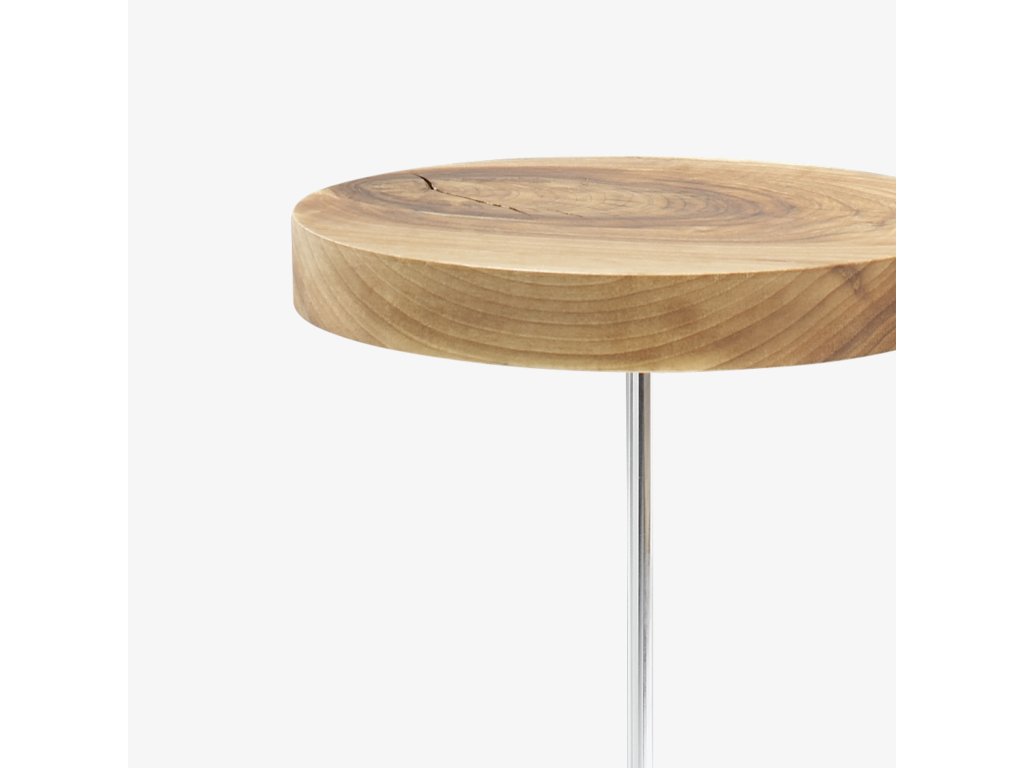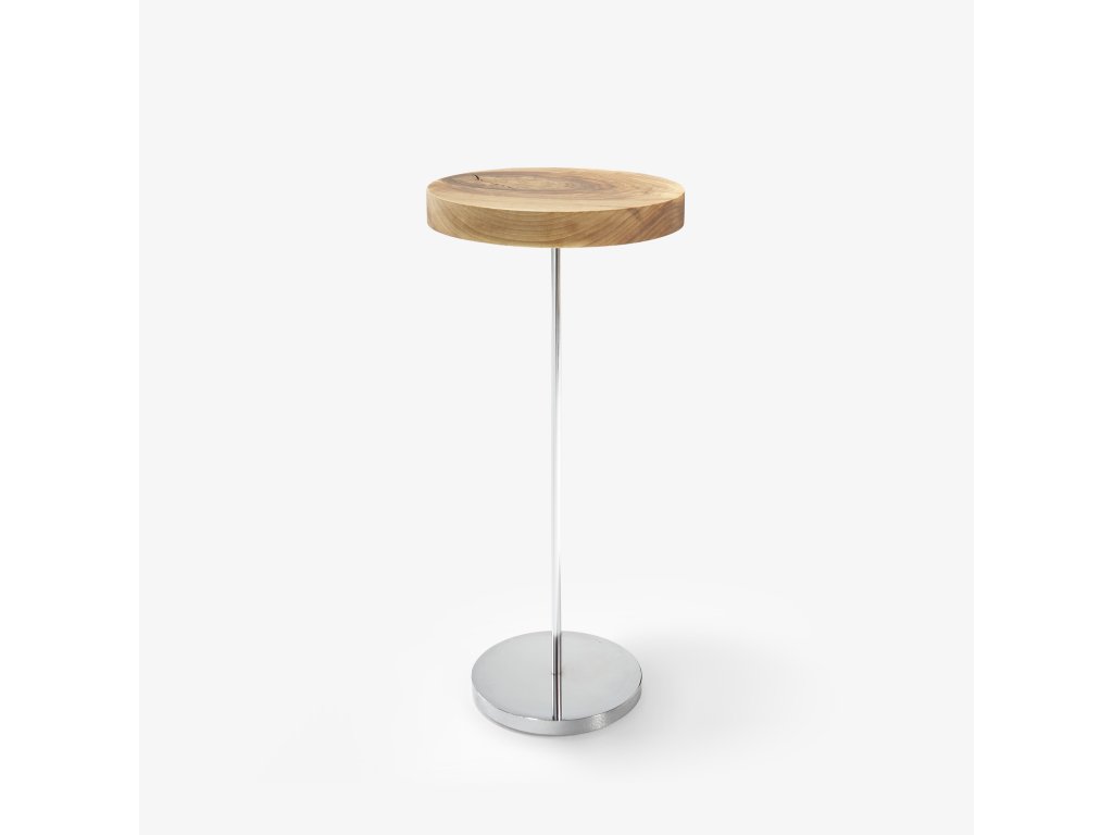 Konstrukce z brilantně chromované oceli; top vyrobený z kulatiny z masivního ořechu s viditelnými suky a prasklinami. Průměr vršku se pohybuje mezi 25 cm a 30 cm. Každý stolek je jedinečný.