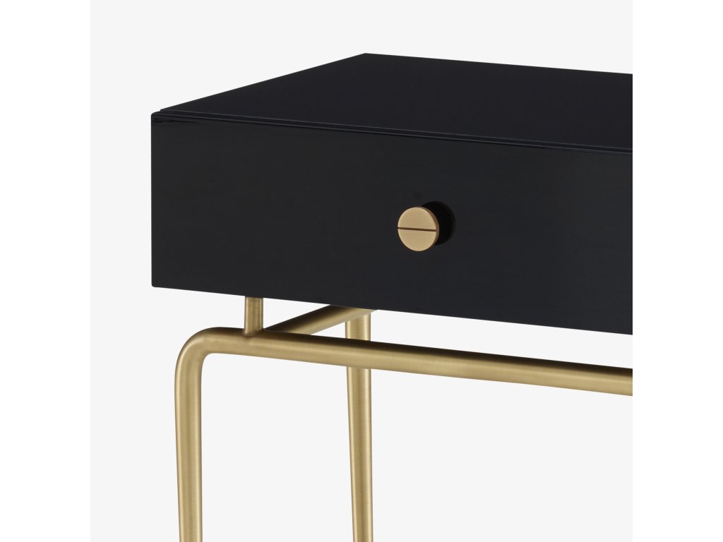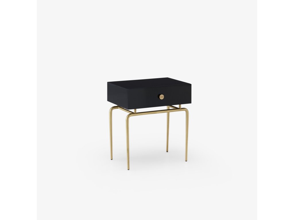 atraktivní a nadčasový, který vnese osobitý nádech do vašeho domova: s tím počítal Michel Roset, když se rozhodl uvést do výroby noční stolek a konzoli Débourgeoisée. Základna a rukojeť z mosazi, lakované oceli. - Noční stolek: komoda se zásuvkou z lesklé černé lakované MDF. Zásuvka na neviditelných pojezdech s kontrolovaným zavíráním.