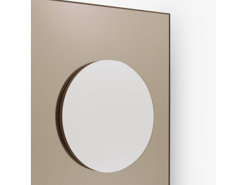 Jak reflektovat bez agrese? Odpověď zní, v „půltónech“. Tato zrcadla umožňují odrážet okolí v tónech šedé nebo bronzové, ale také jasně odrážet vše, co člověk hledá. Jedno zrcadlo může skrývat druhé... Bronzové zrcadlové sklo s masivním lemem z amerického ořechu a vsazené kulaté zrcadlo s lemem z ořechové dýhy. Lze zavěsit vodorovně nebo svisle.