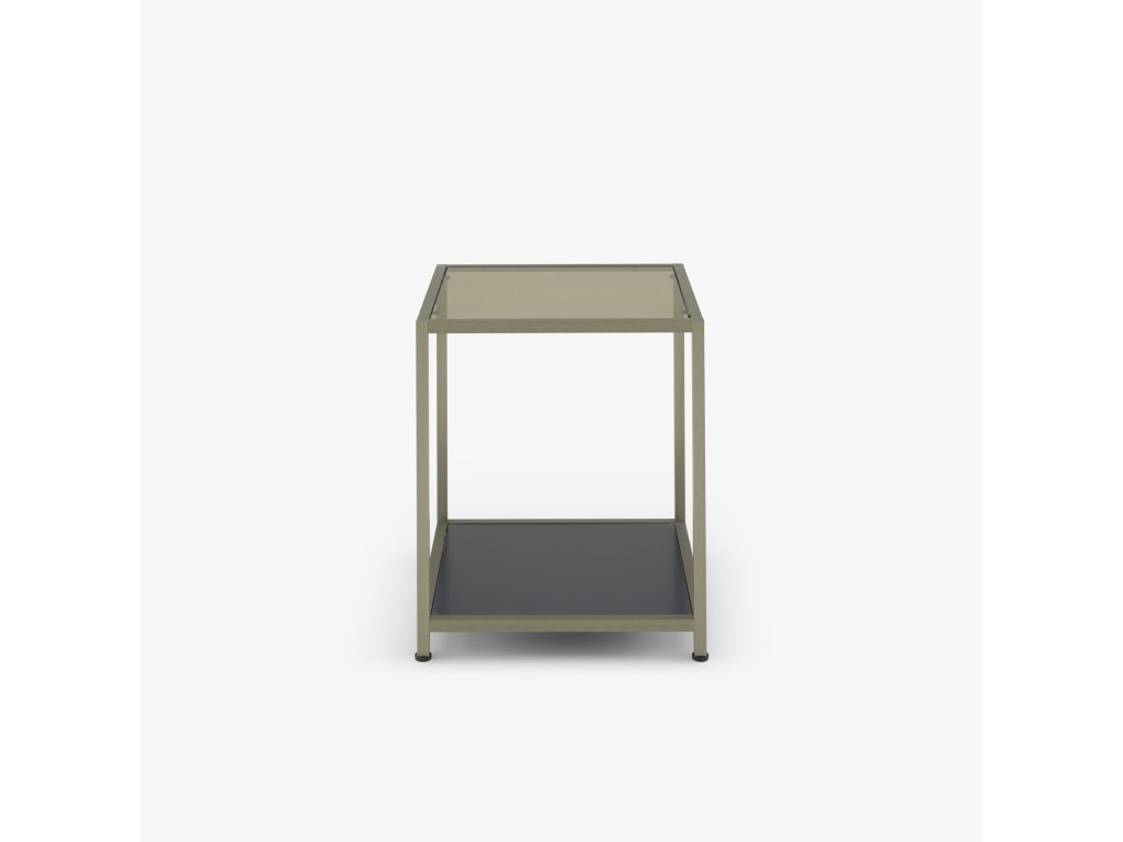 Horní povrch z 8 mm silného bronzově tónovaného tvrzeného skla. Lakovaný spodní povrch. Vzdálenost mezi 2 povrchy: 354 mm.