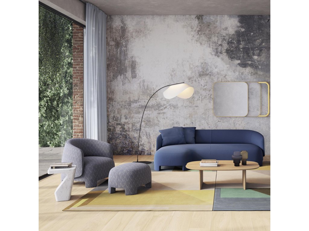 Design má někdy „obnovující“ sílu a tato stojací lampa, jako bambusová hůl sklánějící se pod tíhou sněhu, vyzařuje „klid“. „Měkký“ úhel kovové trubice se odráží ve stínítku, který rozptyluje uklidňující LED světlo.