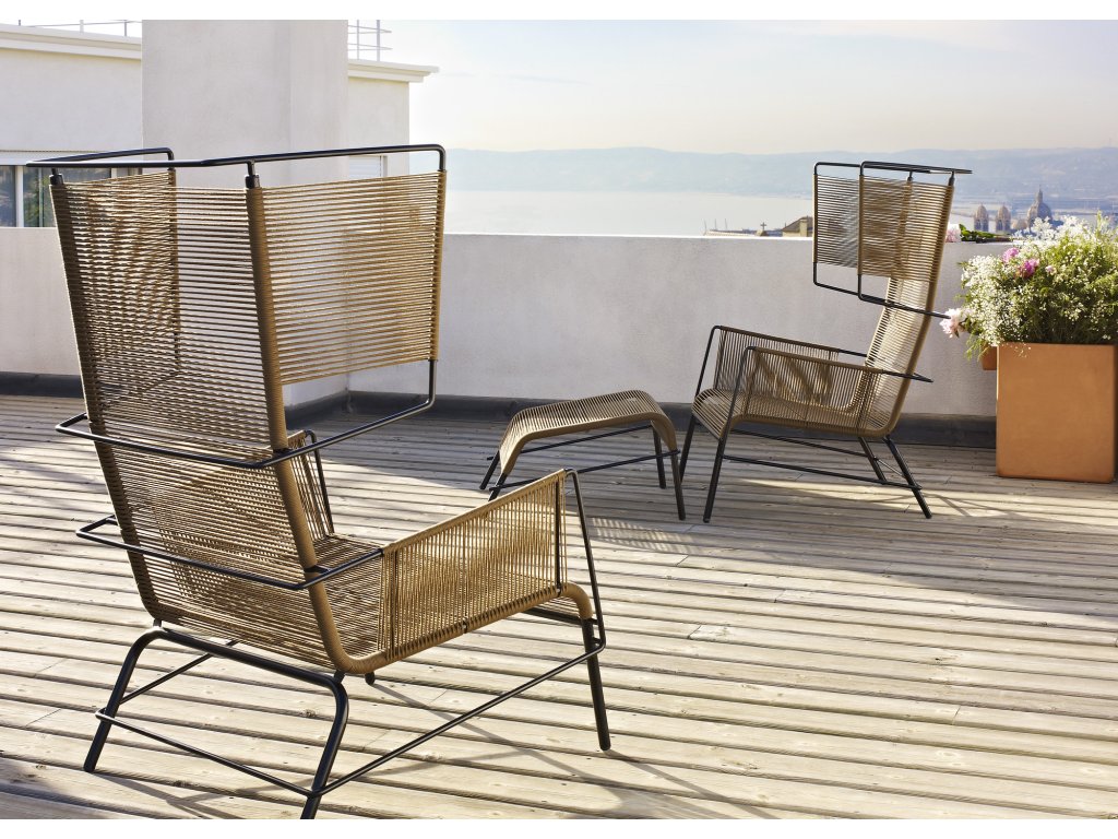 Konstrukce a základna z broušené černě lakované oceli s antikorozní úpravou, povrchová úprava černým polyesterovým lakem s úpravou proti UV záření. Ochranné kluzáky. Sedák a opěradlo jsou tkané z 350 m masově barvené polypropylenové šňůry s úpravou proti UV záření. Volitelně lze objednat sedací/bederní polštář z pěny „Dry-Feel“. Tato pěna má zcela otevřenou buněčnou strukturu, která usnadňuje odvod vlhkosti, čímž zkracuje dobu schnutí a tím zabraňuje vzniku plísní. Tento polštář je vybaven černými šňůrami, kterými lze přivázat k rámu křesla, aby držel na místě.