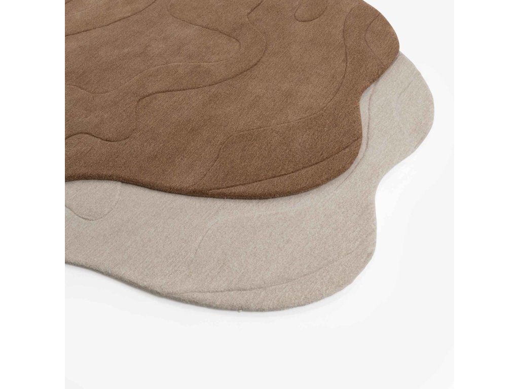 Tento koberec s organickým designem má nepravidelný tvar oblázků, který kopíruje kresbu Pierra Paulina připomínající topografické vrstevnice. Jeho jedinečný vzor je umocněn pečlivou prací s prošíváním, která vytváří jemnou hru reliéfu díky dvěma výškám novozélandské vlny, obě v monochromatickém odstínu pro elegantní a hluboký efekt. Koberec ze 100% novozélandské vlny, ručně prošívaný a tvarovaný s použitím chomáčů dvou různých výšek (12 a 15 mm). Pro zakázkové rozměry: minimální 100 x 117 cm a maximální 340 x 400 cm (nad maximální rozměry je nutná zvláštní žádost). Domácí použití - Nevhodné pro podlahové vytápění.