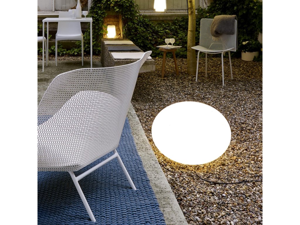 Tato svítidla mají velmi čistý design a jsou určena jako přídavné světelné body v zahradě. Uspořádané například kolem terasy nebo venkovního stolu vytvoří příjemnou, hřejivou atmosféru. Bílý rotačně lisovaný polyetylen (PE) s černým neoprenovým kabelem (5 m) a černým ručním spínačem. Dodáváno s 1 kompaktní fluo spirálovou žárovkou 1 x 24 W E 27, barva 840 (studená bílá). VENKOVNÍ použití (stupeň krytí IP 44).