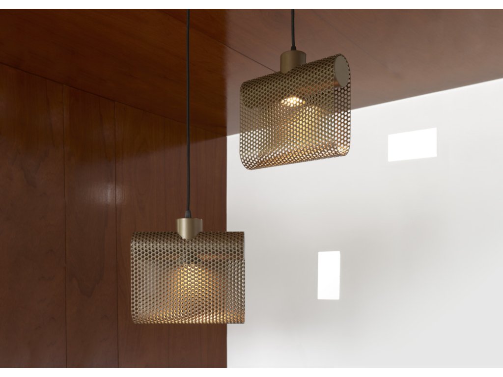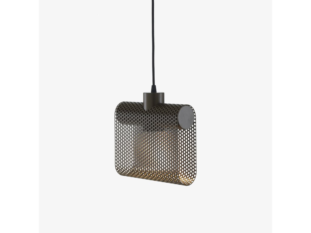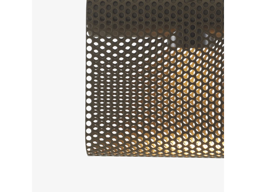 Stínidlo z válcovaného a svařovaného děrovaného plechu. Bronzová povrchová úprava epoxidovým lakem. Stínidlo 24 cm x 5,5 cm x V 20 cm. 2metrový černý textilní elektrický kabel. Pavilon Ø 10 cm - V 2,3 cm. Dodává se s 5W GU10 dichroickou celoskleněnou LED žárovkou, s úhlem rozptylu 36°, barevnou teplotou 3000K (teplá bílá), 400 Lumenů. Nestmívatelná LED žárovka.