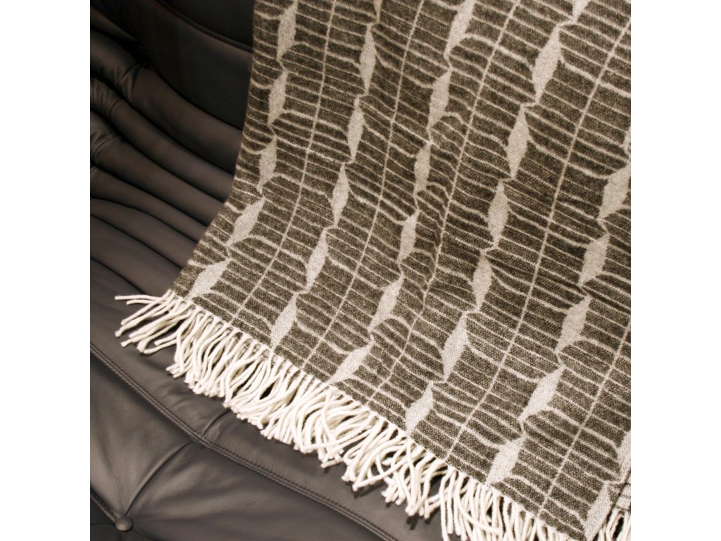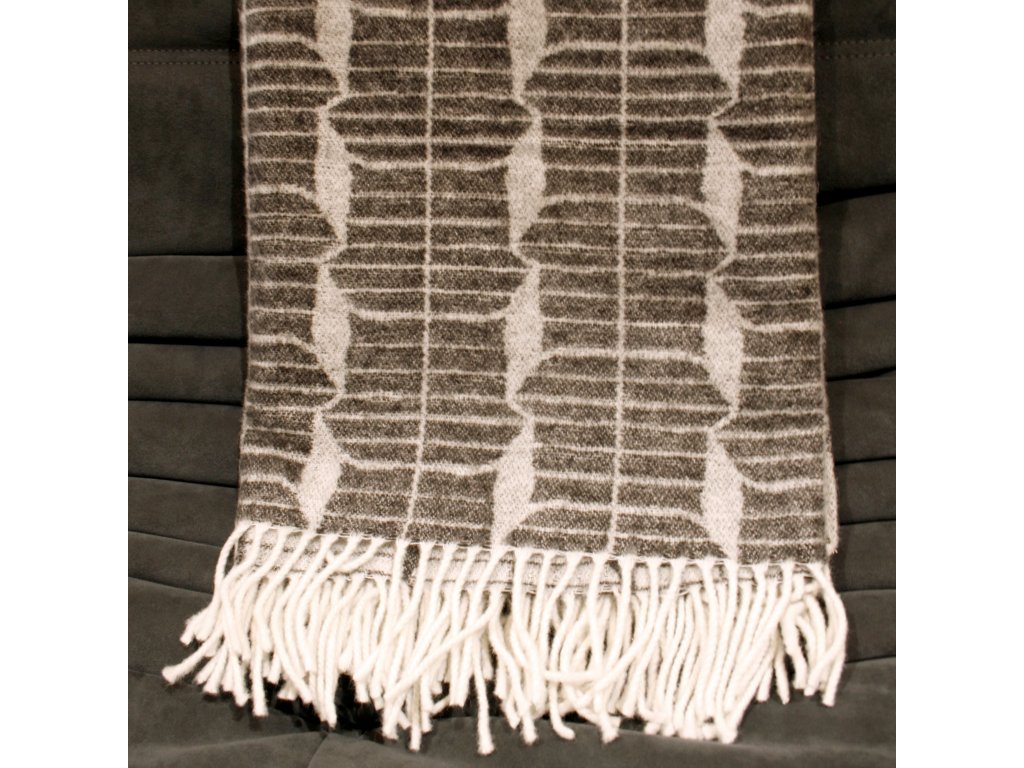 Pléd z limitované edice. 70% vlna 30% polyamid. Délka 170 cm včetně třásní 9 cm na obou stranách.