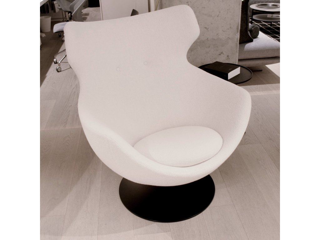 KONSTRUKCE: Struktura ocelového drátu oblečená ve vstřikované polyuretanové pěně. Oblečený v prošívání polyesteru 110 g/m2. Otočná základna v 8 mm silné oceli v epoxidovém saténově černém laku.
