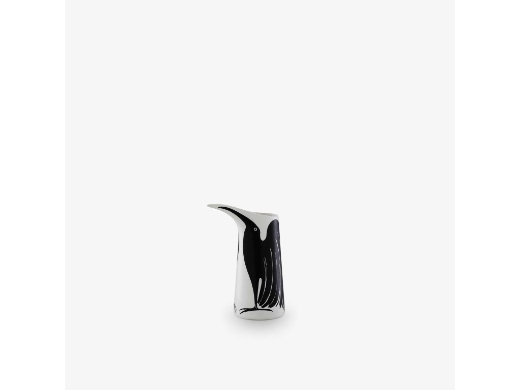 Váza z formované bílé smaltované keramiky s černým motivem.