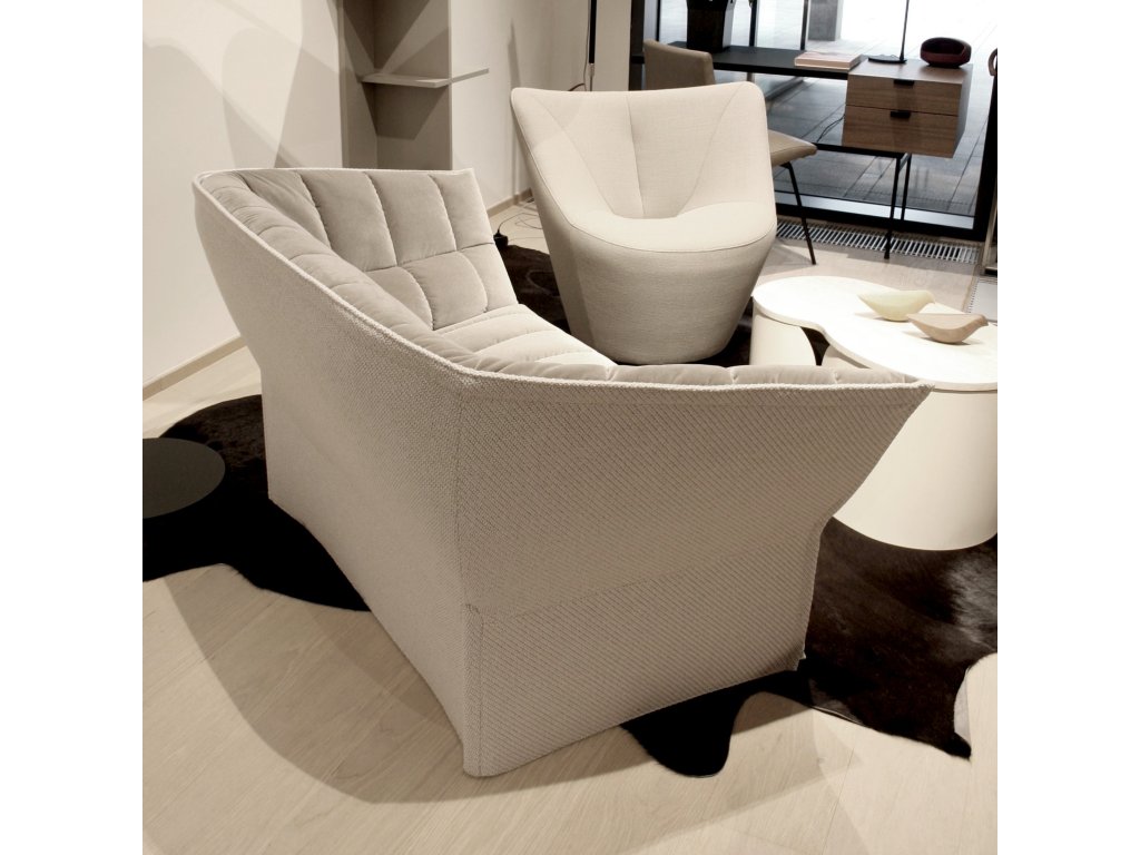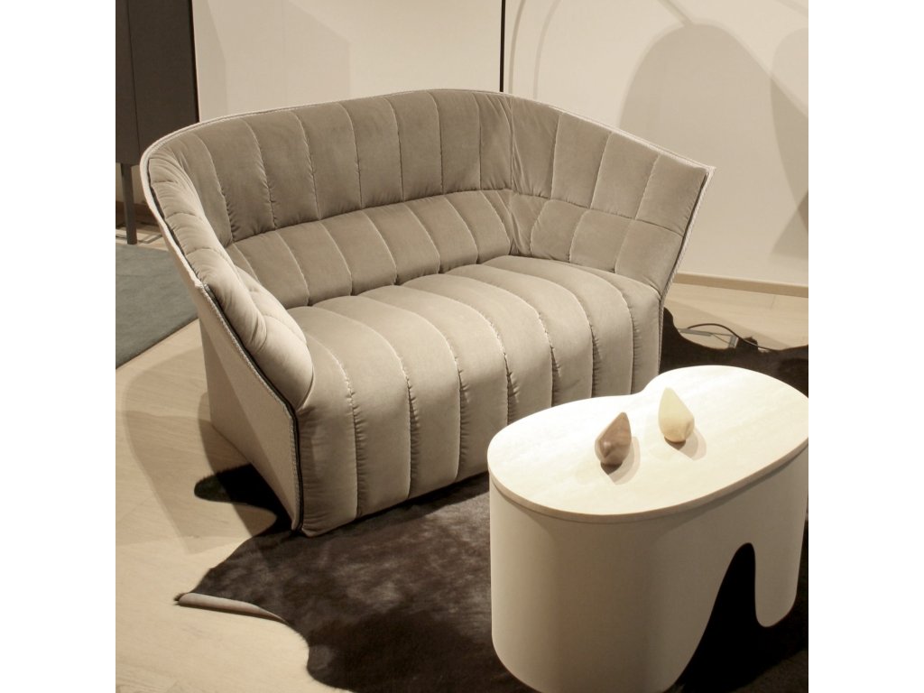 POTAŽENÍ: Potahy zad a sedadel prošívané pásy polyesterového prošívání o gramáži 300 g/m2, které poskytují nápadně strukturovaný vizuální efekt. Potahy podnožky prošívané polyesterovým prošíváním 200 g/m2. Zadní část zad má tvar koruny květiny a je držena na místě kovovými zipy: ty mohou být vyrobeny z kjótské nebo oregonské kůže nebo z tkaniny Divina nebo Coda. Potahy drží na místě suchý zip a zipy a jsou plně snímatelné.