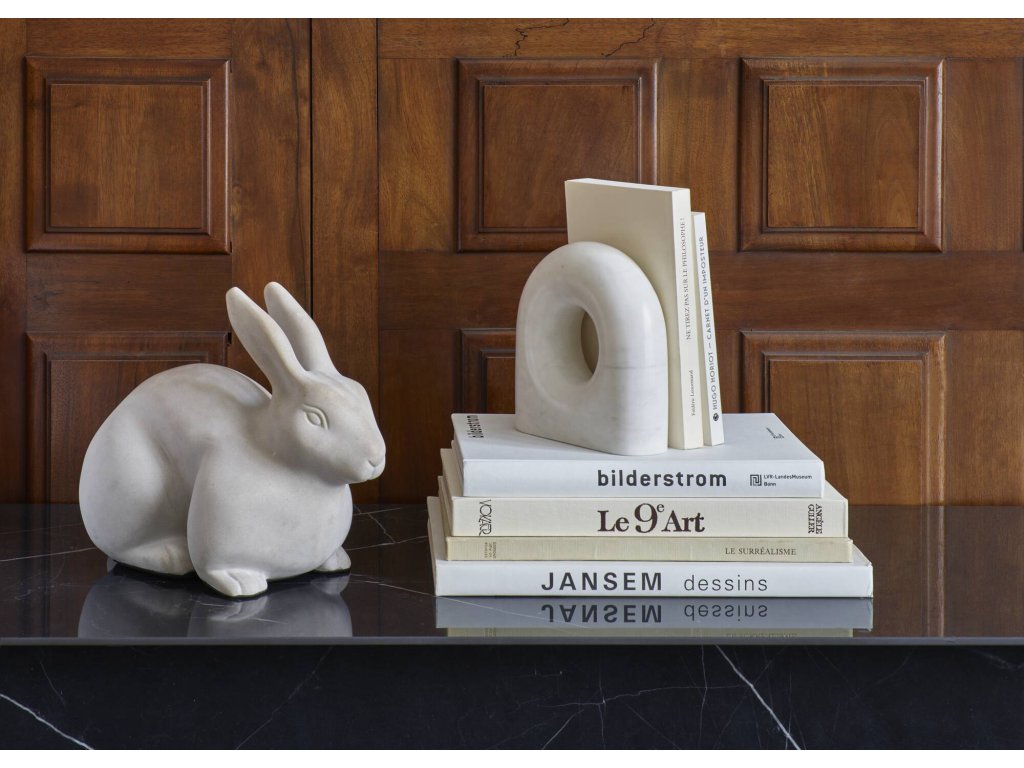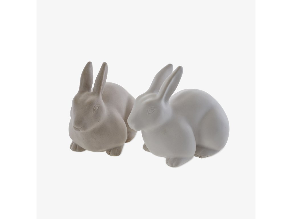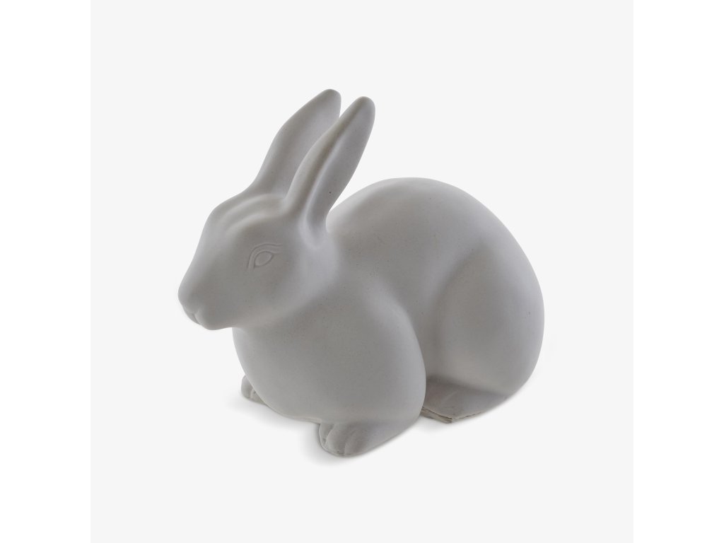 Dekorativní králík v lité pryskyřici. Matné provedení v bílé nebo grége barvě.