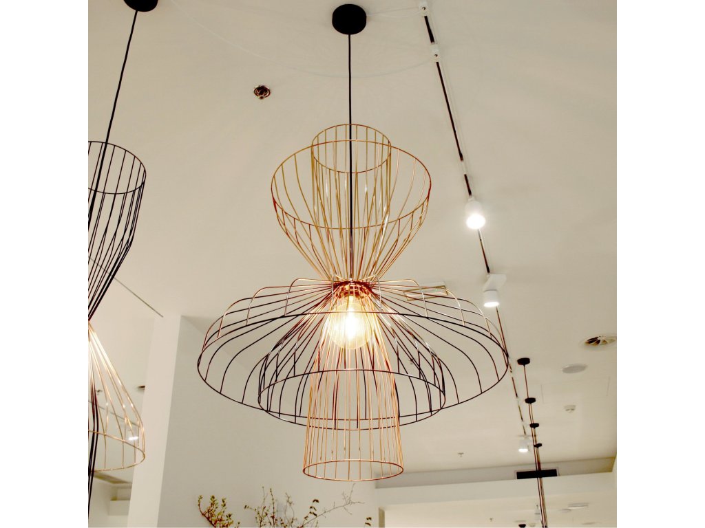 Složeno ze středního a velkého stínidla v černé barvě a dvou malých a jednoho středního stínidla v měděné barvě