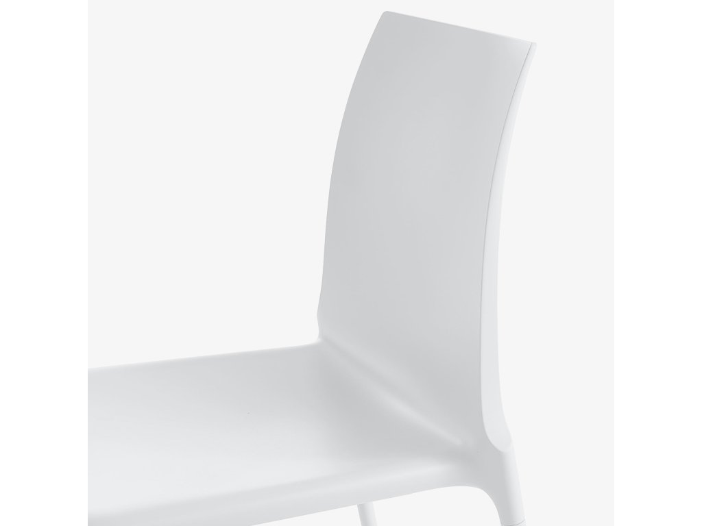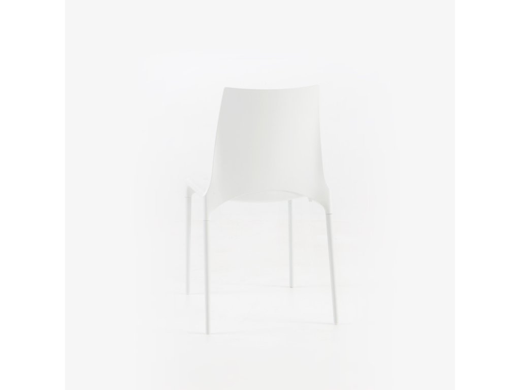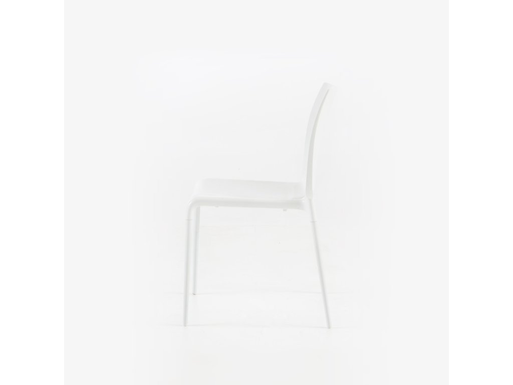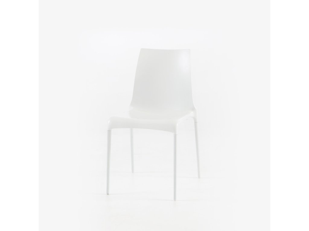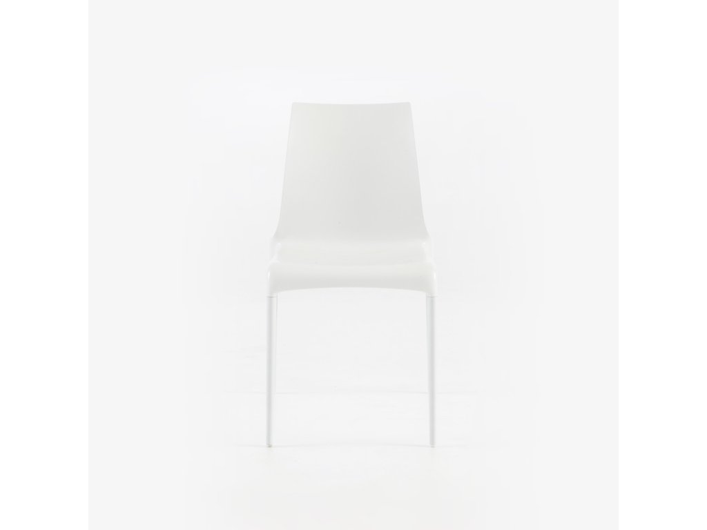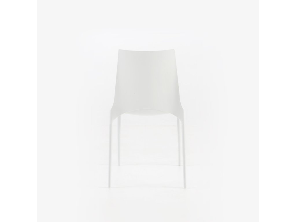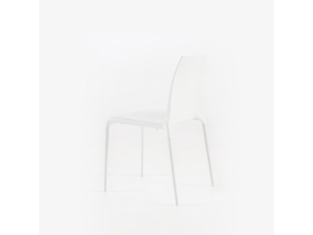 Židle se sedadlem z lisovaného lakovaného polyuretanu a 4 ladícími lakovanými hliníkovými nohami. Tato židle je vhodná pro venkovní použití. Lze je skládat na sebe po čtyřech.