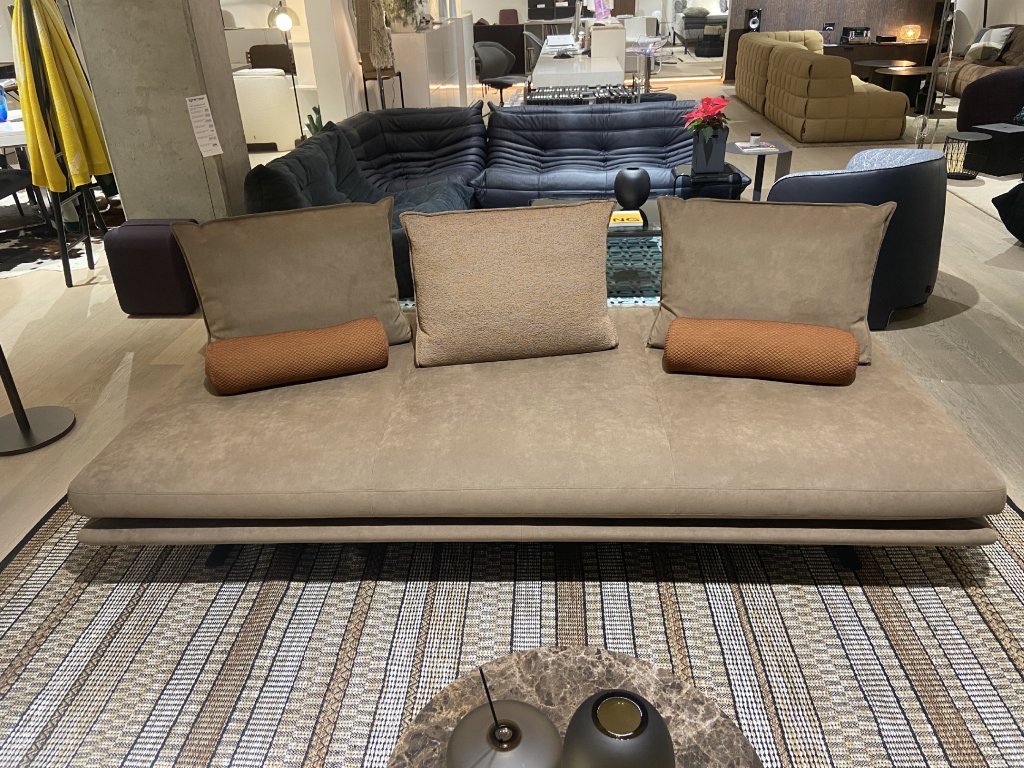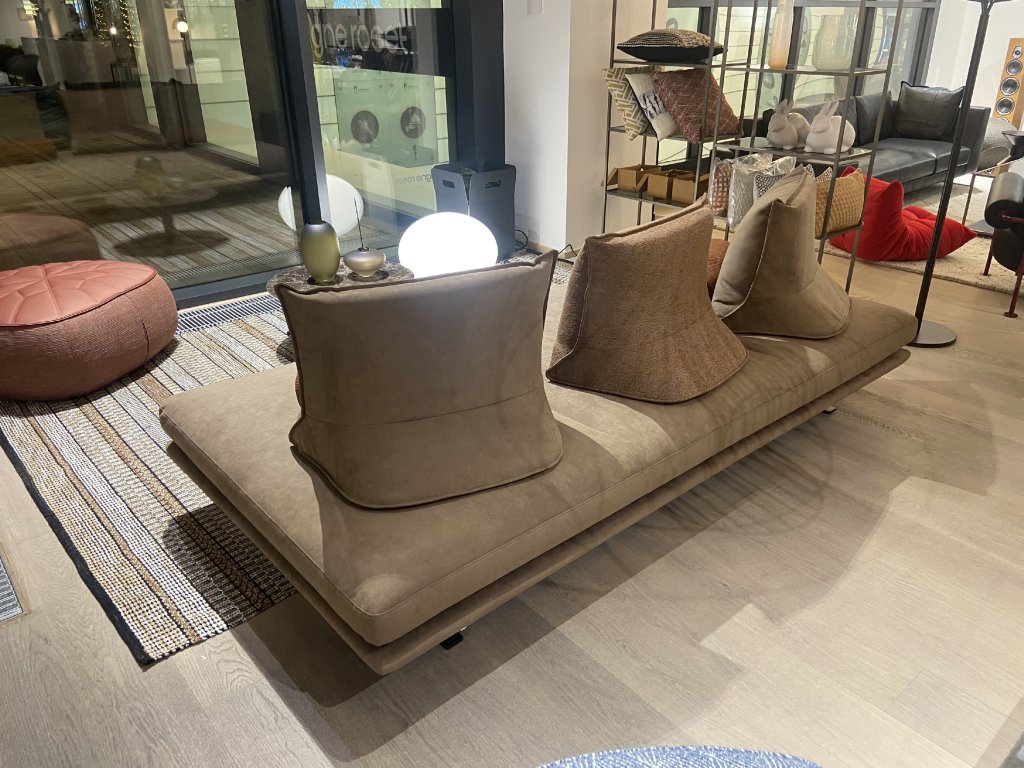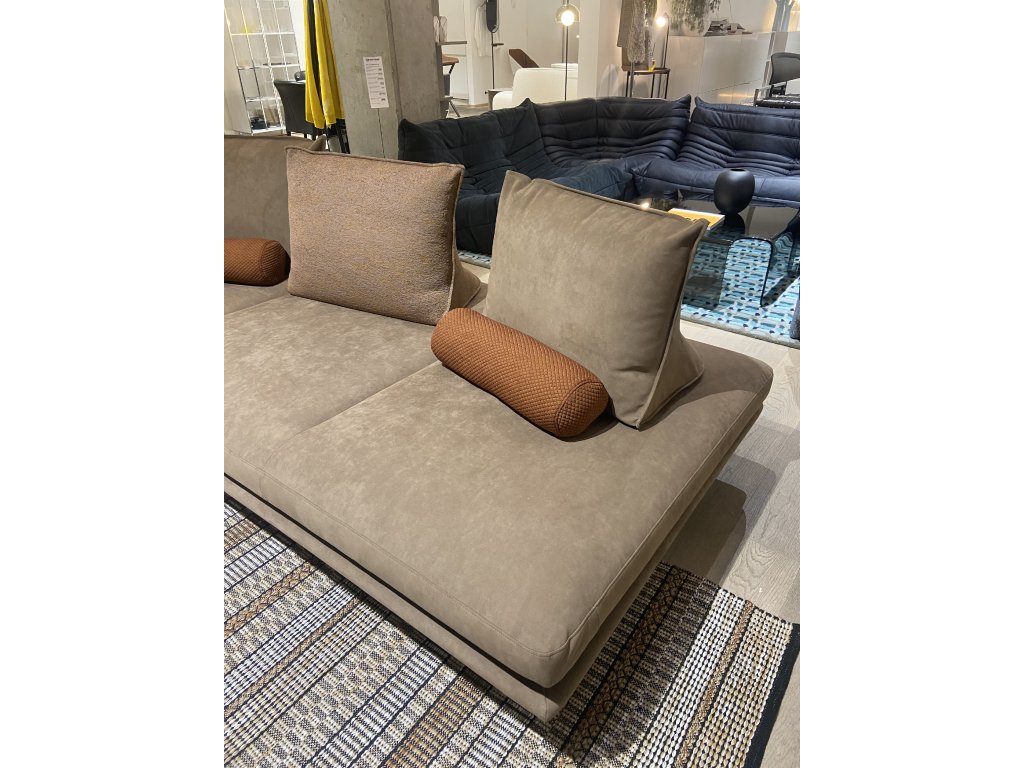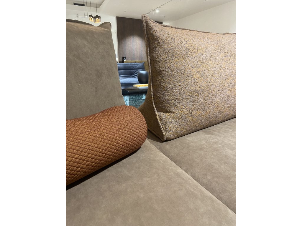 Provedení základny a 2 opěrných polštářů v látce Alcantara Terra, 1 opěrný polštář v látce Arda Automnal, 2 bederní polštáře v látce Mosaic Renard