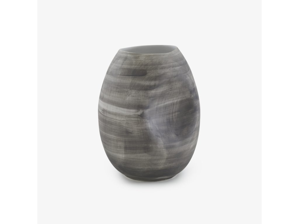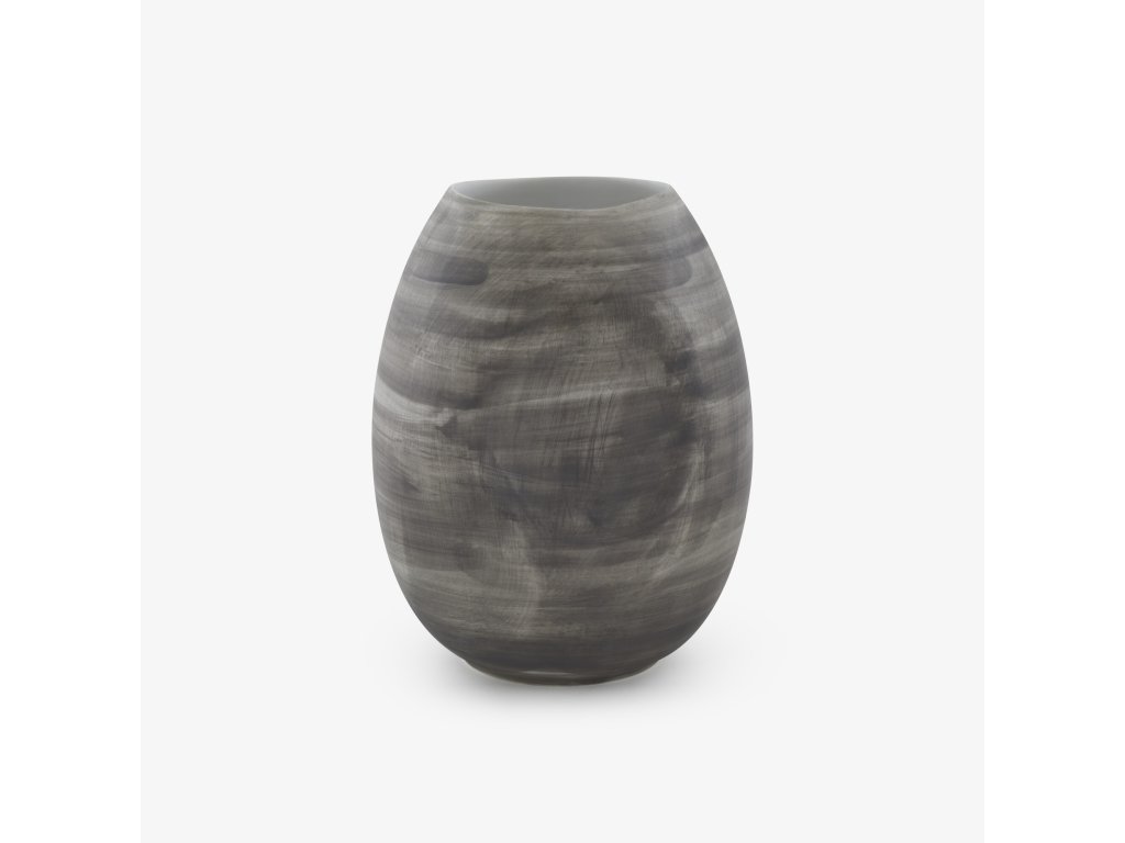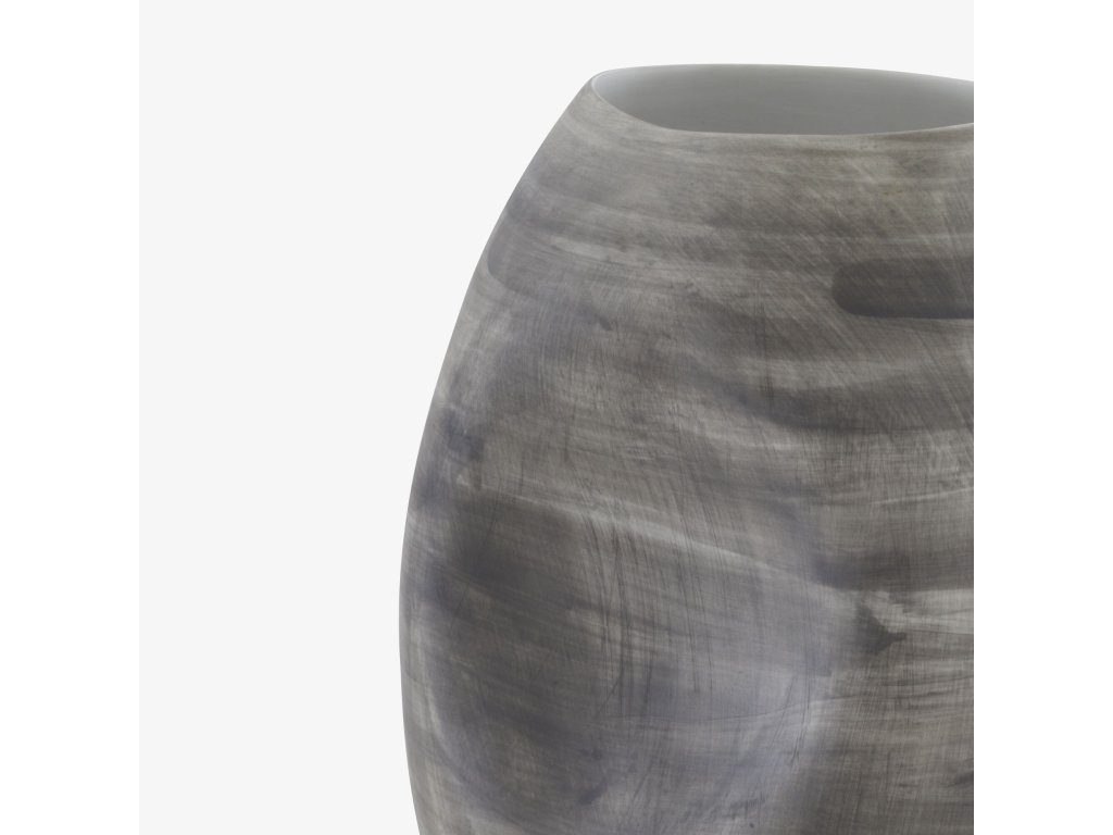 Váza Pression je dobrým příkladem stylu provedení, který je sice jednoduchý, ale dává vyniknout jak materiálu, tak organické měkkosti designu. Formovaný, sklovitý "bisque" porcelán, ručně malovaný a povrchově upravený matným šedým smaltem.