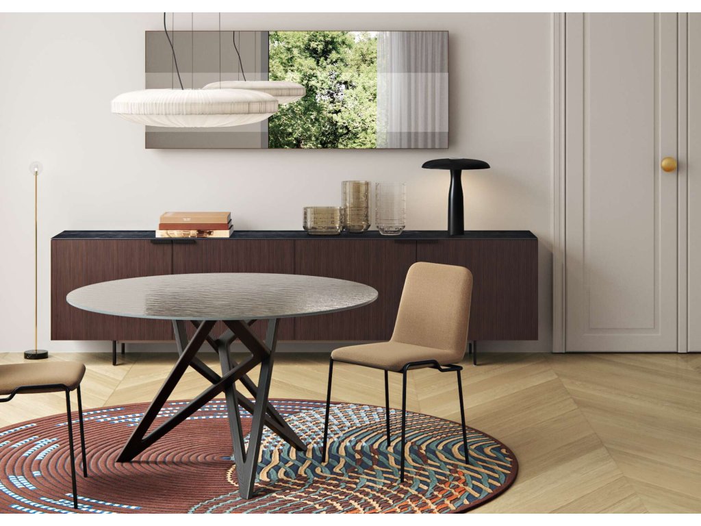 Výroba váz Prisme s jejich jedinečnými drážkami je obzvláště složitá: každá váza je zhotovena ručně a poté prochází frézou, která drážky vyřezává pod proudem vody. Jelikož není možné vytvořit dokonale rovnou linii ručně bez vodítka, v případě oválné verze jsou drážky vytvořeny předem v ocelové formě, poté jsou vyfrézovány a nakonec zaleštěny. Váza z ručně foukaného skla v čiré a kouřové barvě.