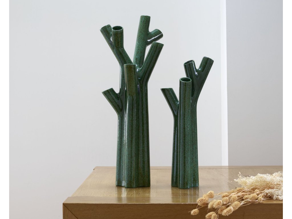 Keramická váza s brilantním skluzem s glazurou v barvě forest green.