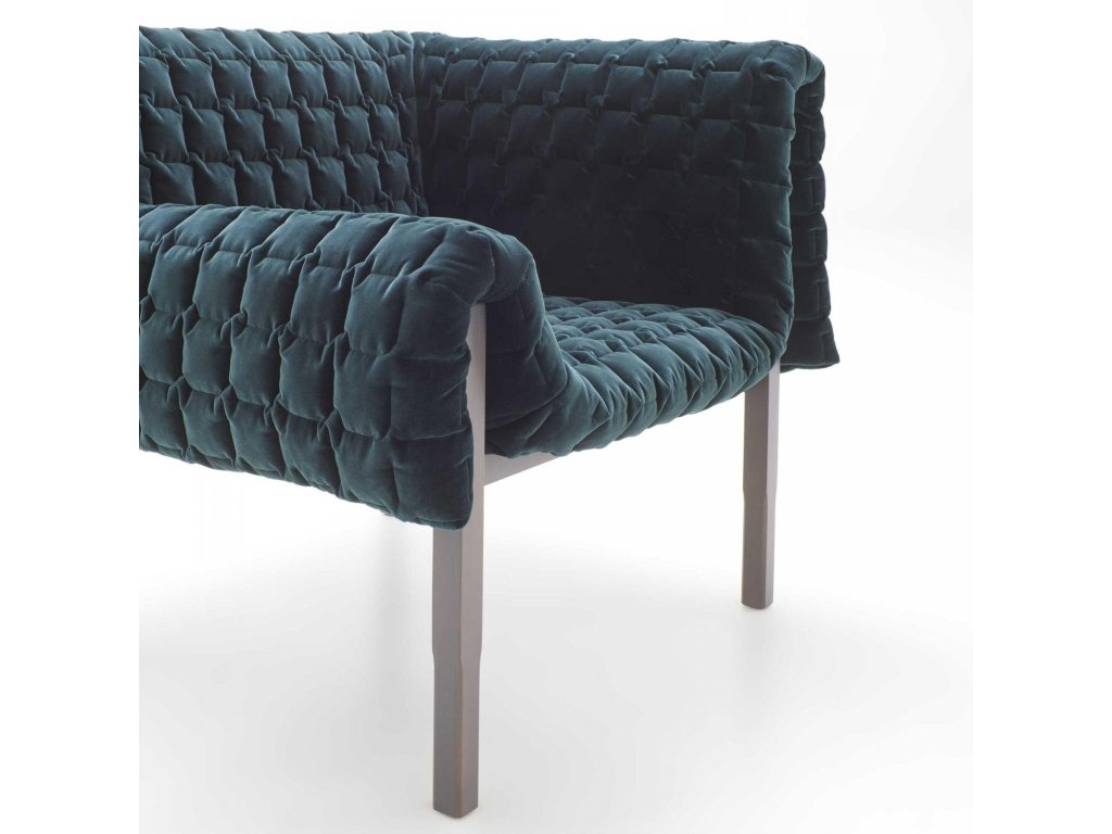 Pro Ligne Roset spojuje Ruché (název odkazuje na nabíranou nebo plisovanou látku, která slouží jako ozdoba na kusu oděvu) dohromady neobvyklé a tradiční. Neobvyklá věc na tomto kousku je jeho masivní dřevěná struktura a skvělý tradiční prvek: prošívání, samotné srdce jeho savoir-faire. Jeho široké sloupky a zvlnění jeho polstrování se spojují, aby vytvořily harmonickou kombinaci přísných rovných linií a měkkých, příjemných křivek. Ačkoliv štíhlá a jemná, Ruché je přesto měkká a přívětivá. Můžeme také dodat, že samotný design Ruché nabízí kolekci sedadel, která spojuje pohodlí a kompaktnost: její hloubka je pouhých 92 cm a délka různých kusů se pohybuje mezi 170 a 200 cm, což je ideální pro malé byty. A konečně, jeho výška sedu (46 cm) osloví širokou klientelu, v neposlední řadě ty, kteří příliš nízká sedadla zcela odmítají. 2 pohovky jsou k dispozici také ve verzi s nízkým opěradlem (65 cm místo 83 cm), s nižším sedákem (38 cm místo 46 cm), větší hloubkou (101 cm místo 92 cm) a dozadu skloněným sedákem/opěradlem s integrálními bederními opěrkami. Nabízejí proto dvojí výhody pozoruhodného pohodlí a vzhledu skutečné domácí pohovky, čímž se vzdalují od vzhledu „bankety“. Jeho spodní linie mu umožňují elegantní integraci do všech prostorů, dokonce i do těch nejmenších.