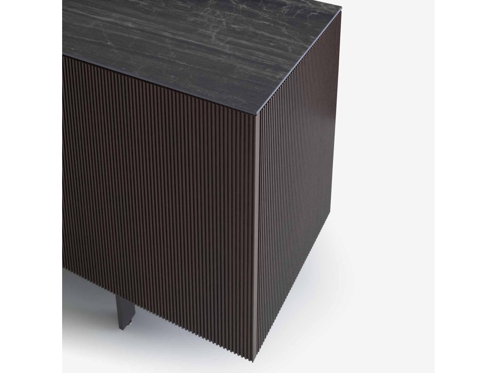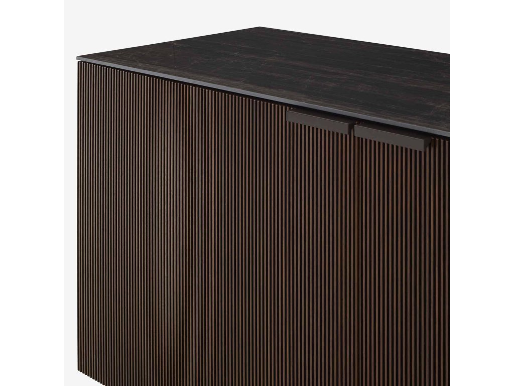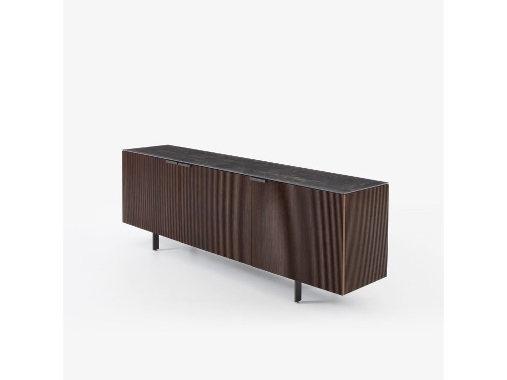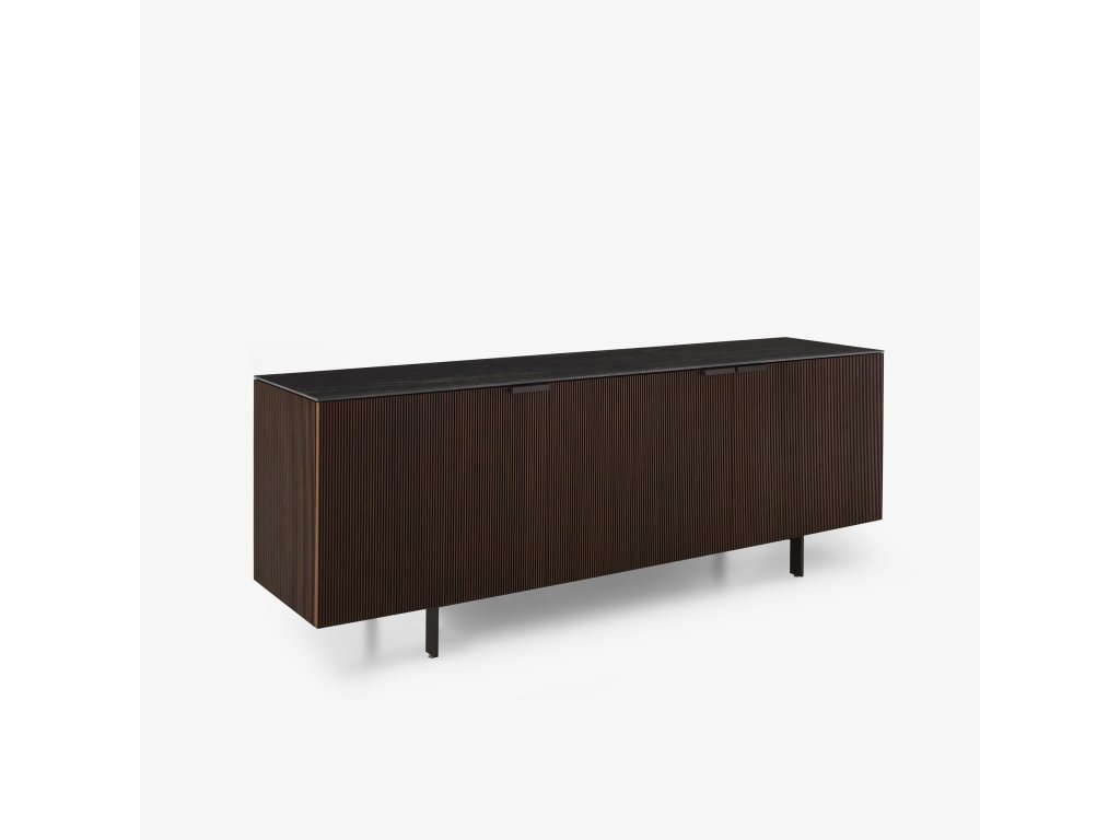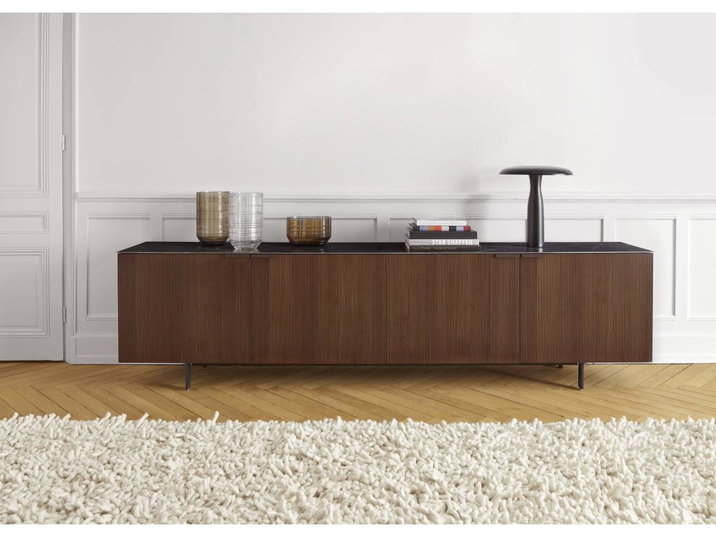 KONCEPT Od Christiana Wernera, designéra řady úložných prostor EVERYWHERE, nyní představuje SELVANS, který se vyznačuje použitím drážkované tmavě mořené dýhy z ořechového dřeva na čelech a bocích. Šířka drážek je 4 mm jak vpředu, tak v dutině. Hloubka drážkování je kolem 3,5 mm. KONSTRUKCE & PROVEDENÍ - TMAVÝ OŘECH: vnitřní přihrádka provedena v čokoládovém laku; rukojeť a základna v čokoládovém laku. Přední strana a hrany z tmavého ořechu. Vrchní deska z keramické kameniny. NATURAL ASH : vnitřní přihrádka provedena v čokoládovém laku ; rukojeť a základna v čokoládovém laku. Přední strana a hrany z přírodního jasanu. Vrchní deska z keramické kameniny. - ČERNĚ MOŘENÝ JASAN : vnitřní přihrádka provedena v čokoládovém laku ; rukojeť a základna v noir laku. Přední strana a hrany z černě mořeného jasanu. Vrchní deska z keramické kameniny.