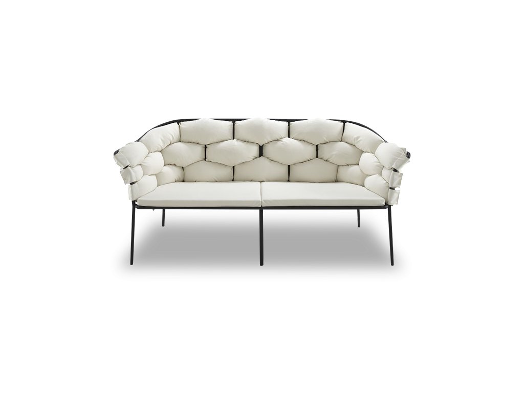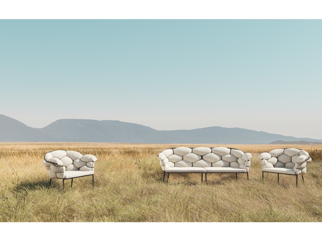POHODLÍ: Sedák z polyuretanové pěny 40 kg/m3 – 4 kPa a polyesterového vlákna. Záda složená ze 3 dlouhých propletených polštářů plněných polyesterovým vláknem.