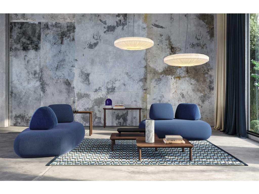 TELEN evokuje japonské zenové zahrady a jejich kameny nahromaděné na pláži. Veškerá kulatost, jemnost, ženskost, tato pohovka - kterou lze téměř klasifikovat jako organickou - má vznešeně dekorativní vzhled. Dvě základní části jeho designu se buď spojují, nebo zůstávají nezávislé, což umožňuje každému jednotlivci personalizovat a tak zvětšit jeho vnitřní prostor. Tato pohovka, jejíž struktura je vyrobena z tenkého panelu a která spočívá na malých neviditelných kluzácích, je téměř celá vyrobena z pěn různé hustoty. Opěrné polštáře, samy o sobě zaobleného tvaru, jsou vyrobeny ze dvou asymetrických úhlů, které poskytují rovný sklon pro formálnější sezení a jeden zaoblenější pro uvolněnější polohu ve stylu lenošení. Jsou zatíženy 15 mm silnou překližkovou deskou, která zajišťuje hladký povrch protiskluzového materiálu.