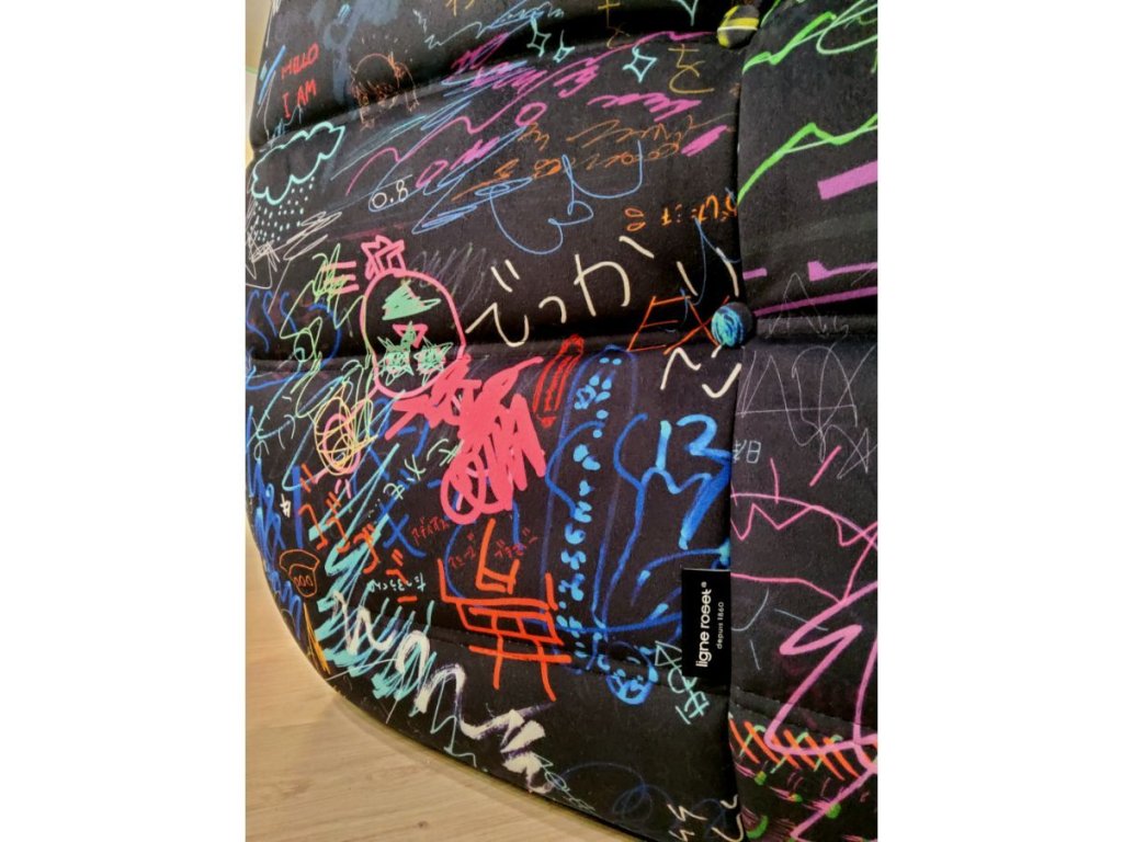 Ran Tondabayashi je japonská vizuální umělkyně známá svým instinktivní, ironickým a výrazně grafickým přístupem. Ve spolupráci s Ligne Roset se její stylistický rukopis promítá do vzoru, který zcela zabírá povrch látky, jako by to bylo souvislé plátno. Výsledkem není jednoduchý dekorativní potah, ale intervence, která modifikuje vnímání objektu a transformuje ho ve vizuální prvek. Design se plynule vyvíjí, sleduje strukturu, aniž by narušoval její rytmus. Syté barvy, výrazné kontury a záměrně zjednodušené tvary se spojují v kompozici, která připomíná popovou a naivní estetiku, ale s jasnou a kontrolovanou konstrukcí. Fúze umění a funkce, která neusiluje o výjimečnost, ale o koexistenci.