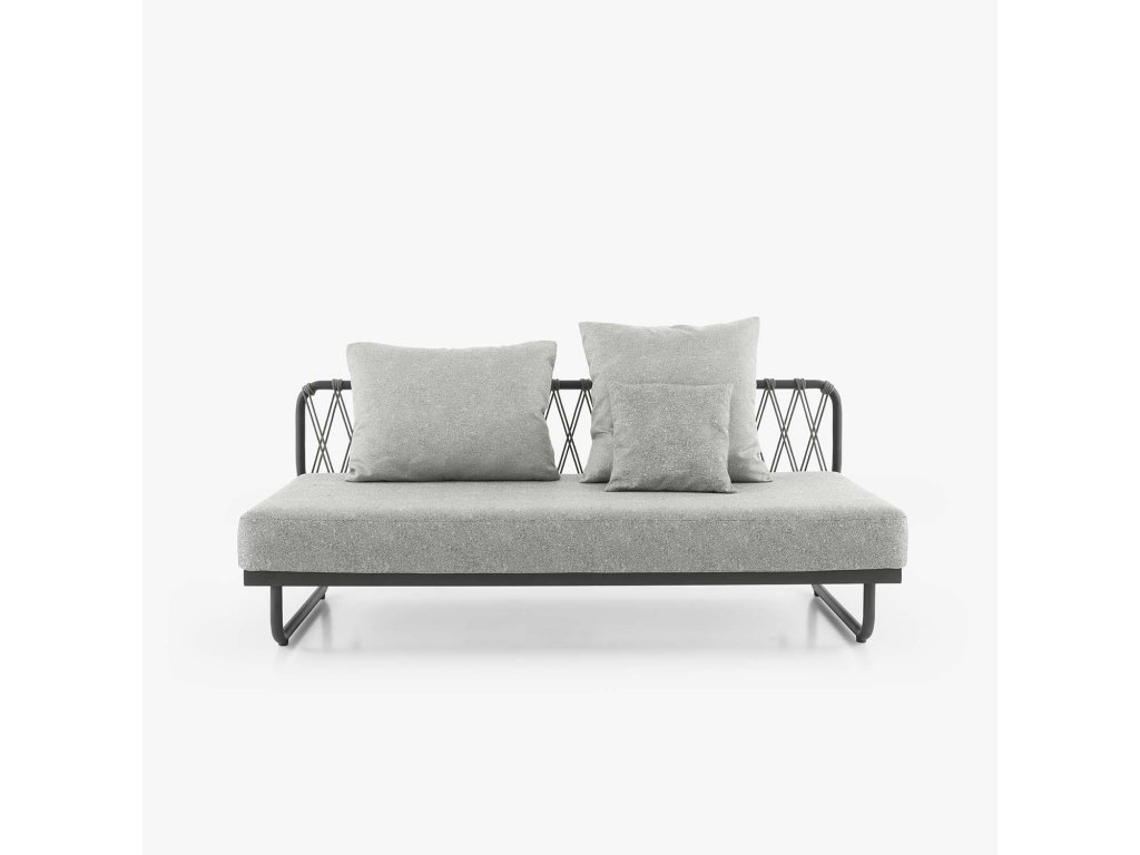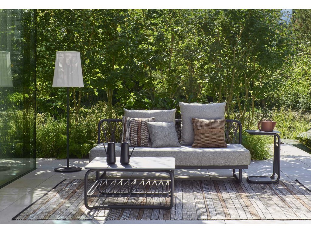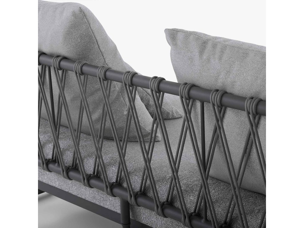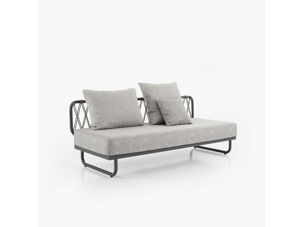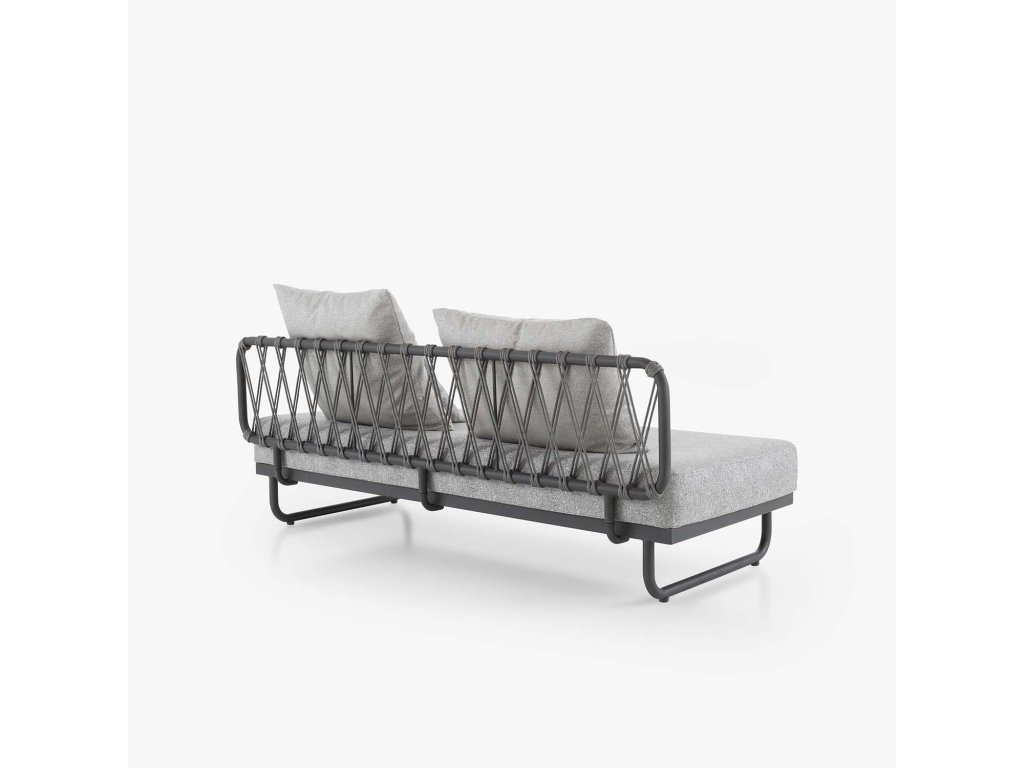 Ultralehká lavice s hliníkovou konstrukcí, která dokáže vytvořit rohovou skupinu nebo lavici k posezení. Lze ji použít také jako lehátko. Tkaniny jsou outdoorové a voděodolné, mají elegantní, útulný a luxusní vzhled. Vyplétání na opěradle je ručně vyráběno v Indonésii.