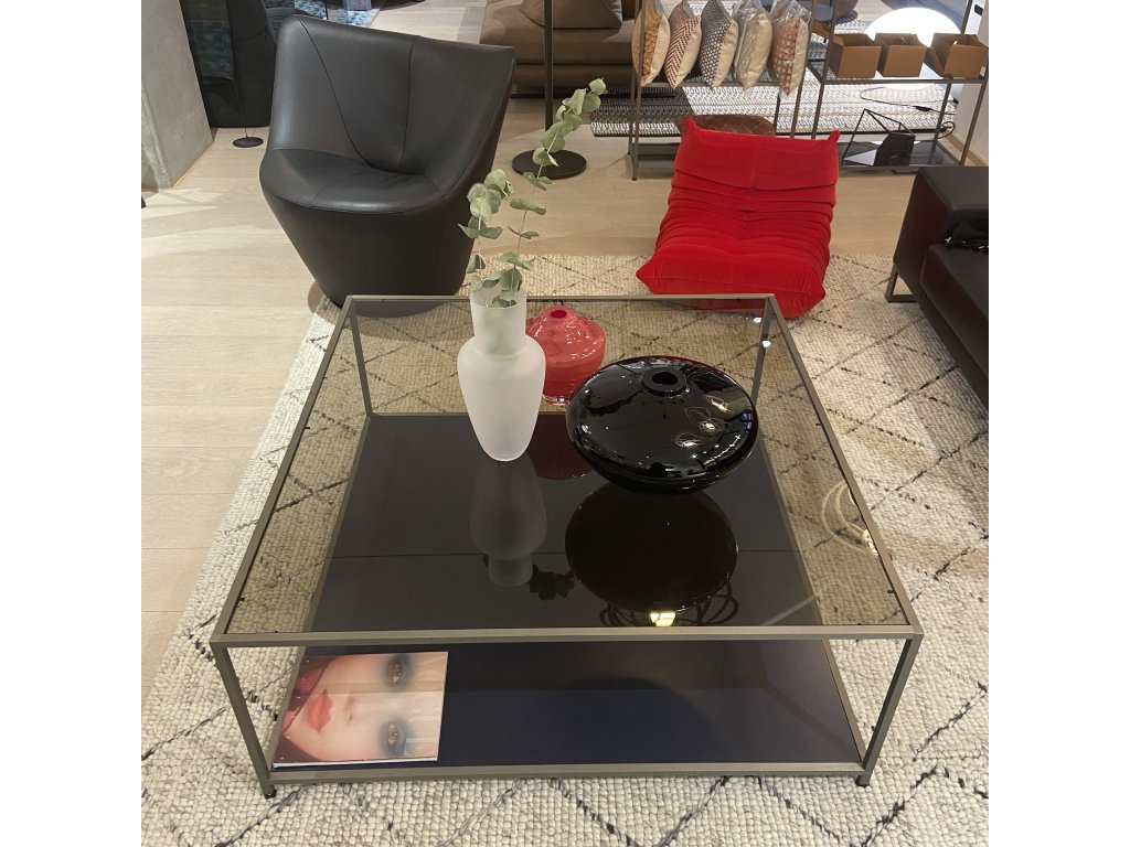 KONFERENČNÍ STŮL: Horní eska z 8 mm silného bronzově tónovaného tvrzeného skla. Lakovaný spodní povrch. Vzdálenost mezi 2 povrchy: 290 mm.