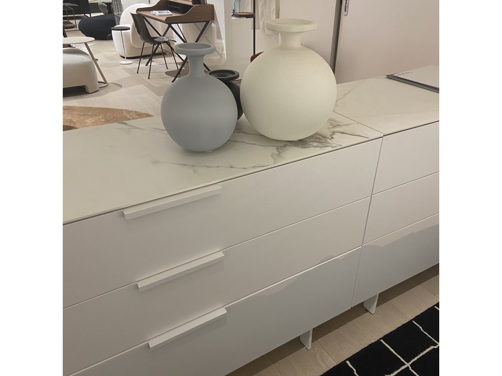 Řada nábytku pro vybavení všech místností v domácnosti, která nabízí kousky do obývacího pokoje či jídelny, skříně do ložnice či předsíně nebo třeba TV/hi-fi jednotky. - Výběr povrchové úpravy pro truhly: saténový lak (výběr z 15 barev). - Volba povrchové úpravy topů: saténový lak (výběr z 15 barev) nebo keramická kamenina (bílý mramorový efekt, metalický antracit nebo Emperador). Pro truhly C1, C40, C64 a C65 nejsou dostupné vršky z keramické kameniny.