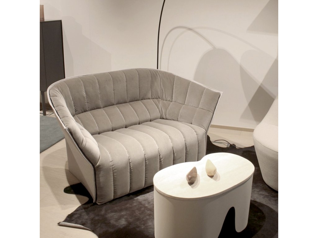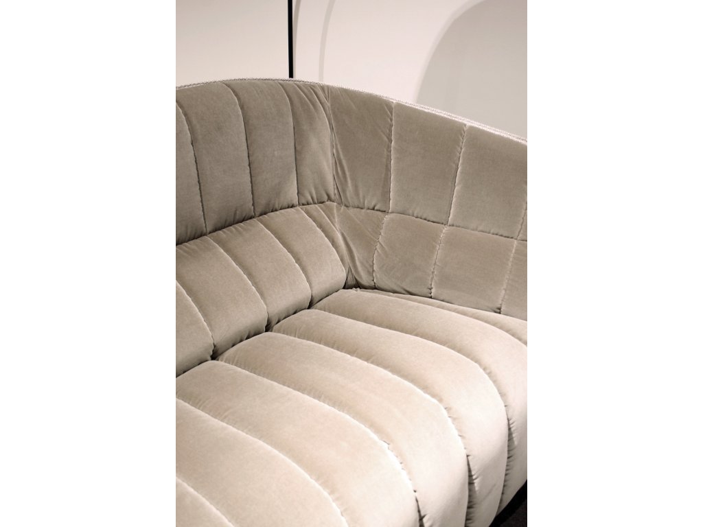POTAŽENÍ: Potahy zad a sedadel prošívané pásy polyesterového prošívání o gramáži 300 g/m2, které poskytují nápadně strukturovaný vizuální efekt. Potahy podnožky prošívané polyesterovým prošíváním 200 g/m2. Zadní část zad má tvar koruny květiny a je držena na místě kovovými zipy: ty mohou být vyrobeny z kjótské nebo oregonské kůže nebo z tkaniny Divina nebo Coda. Potahy drží na místě suchý zip a zipy a jsou plně snímatelné.